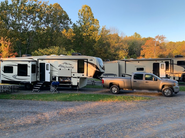 We are now at Walnut Hills Campground in Virginia. we have been here before, it is a nice place, more people here than we usually see, there are a lot of big rigs here tonight, all heading to Florida i guess. Drove 191 miles from Gettysburg to here, truck traffic was heavy and it was windy, my arms are tired. Staying here just one night and tomorrow head to North Carolina. It is warming up nicely as we head south, i like that. Pic below is of our pull through spot.