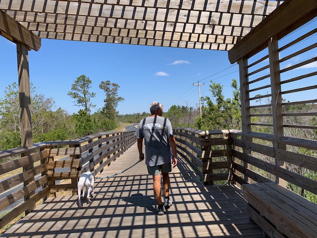 It’s Gulf Shores State park that brings us back to AL. The state park’s 6,500 acres mostly encompass the land behind the Gulf Shores beach community. The Park features 28 miles of paved trails or boardwalks, two miles of beaches, a huge campground, Lodge and conference center, nature center, restaurant, cabins, heated swimming pool, kayak, canoeing tennis & pickle ball courts, etc. I sound like I’m doing a commercial for the park, but we do like it here.