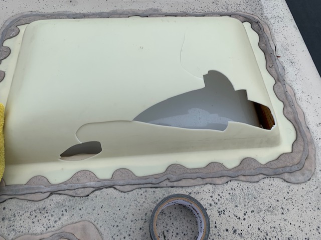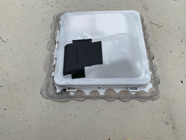 Similar situation happened to us about three years ago. We were not expecting an emergency rv roof repair 5 miles from our site but that is what happened. We were lucky the site had a store and we found two products that worked great. http://www.rvroofmagic.com fixed the leaks on the roof and we actually found a replacement skylight from someone selling salvaged unit about 12 miles away. Nothing prepared us for that day. We thought we were going to have to drive about 2 hours to get to a full service station for rv’s