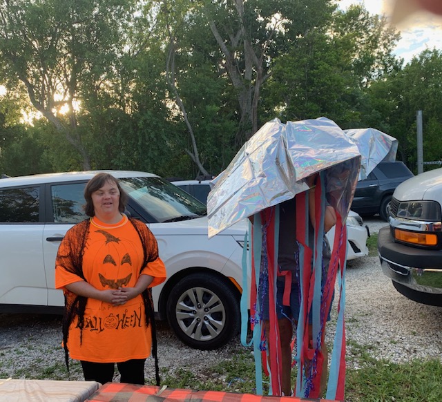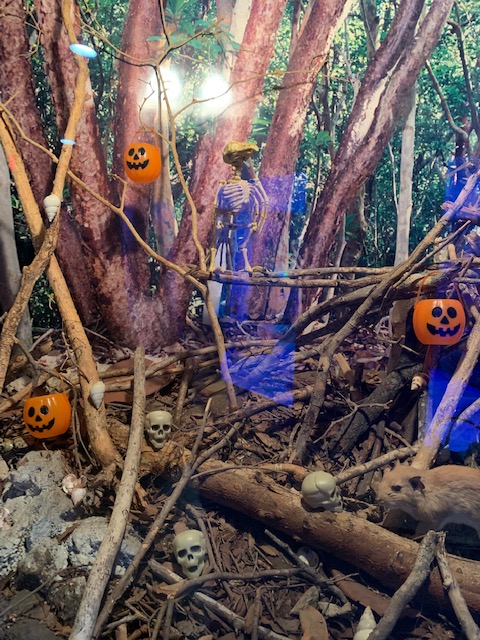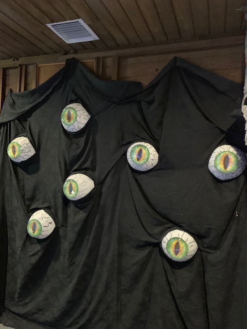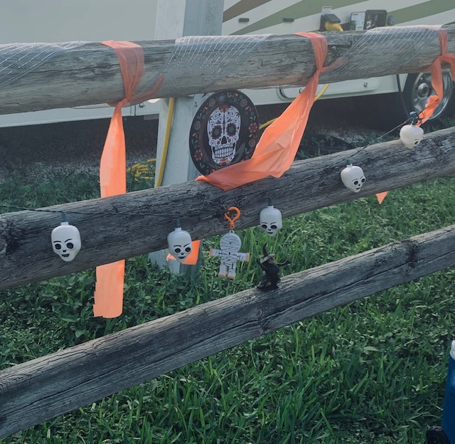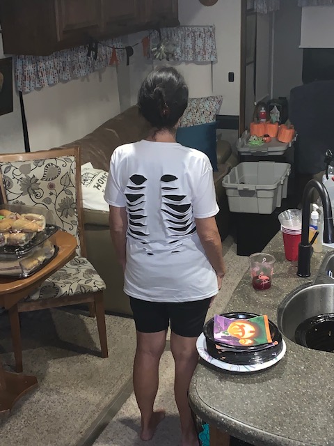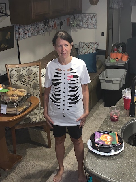 Great decorations and what a fun place to volunteer. Love the shark hat and your skeleton shirt. Very clever. From being on the west side of the country since June, it was shocking to see your photos with no one wearing masks. It’s a whole different culture down there. Stay safe and keep on enjoying. We’re in Nevada now and everyone is required to mask indoors and here in Vegas area, everyone is complying.