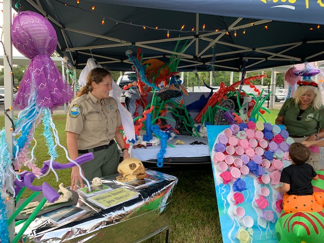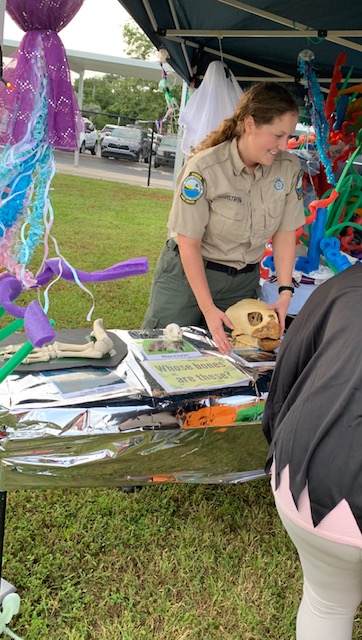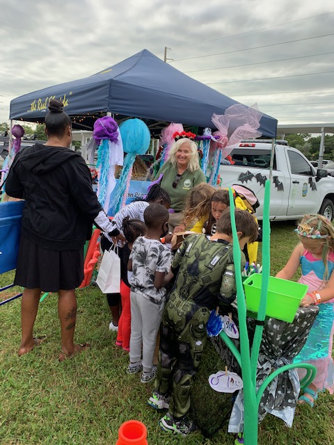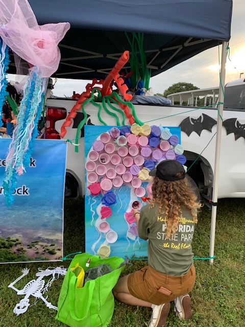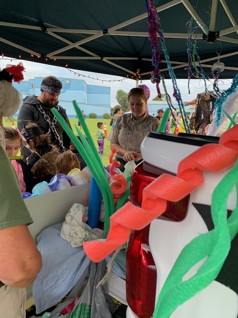 On Friday the 29th of October Me, Ranger Tess and two other volunteers, Donna & Leah went to a Trunk or Treat at Key Largo Elementary School. We took some of the decorations at the aquarium and other Halloween paraphernalia and set up the truck.