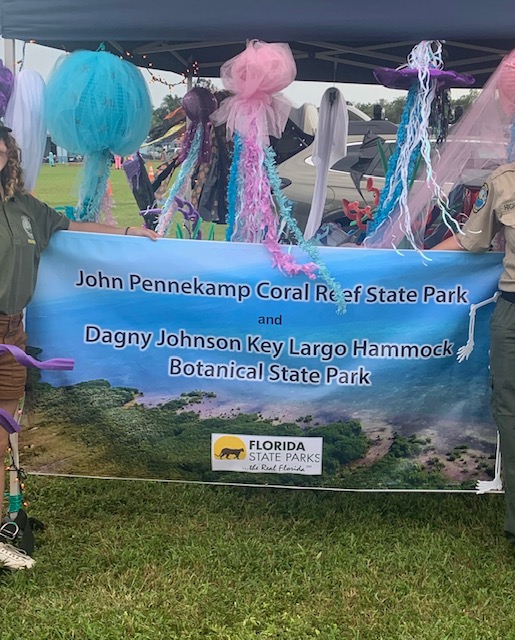 We had a fun time! The kids got to poke a hole in the jellyfish for a prize, Ranger Tess brought some different animals skulls along to show and and tell. Donna & I got to get kids to color a fish take it with them of pin it on the reef which is the front of the table. We figure there was around 500 kids that came out for the fun!