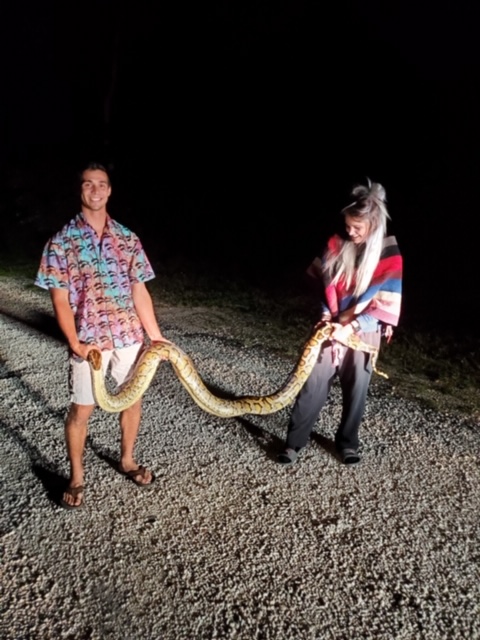 Glad to here you have hot water and a new throne. A python. No Thanks. Interesting they put a tracker on it to see if it attracks males. I wonder how they know if mLes are hanging around or how they know thatvthe male hasn’t got the female pregnant leading to more little pythons? Glad to hear you two are enjoying yourselves