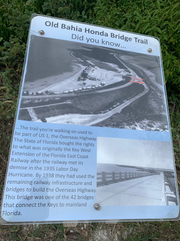 Bahia Honda Key’s has a deep natural bay that has been a harbor for passing sailors from a very long time ago. The island’s name, is Spanish for “deep bay,” it began showing up on Spanish nautical charts hundreds of years ago. The park was signed over to Monroe County sometime between 1953 and 1957, and in 1961 Monroe County gave the Florida Park Service control of the park on Bahia Honda. Most most of the island was still owned by Monroe County and private landowners, and in 1963 the county deeded an additional 63 acres to the Florida Park Service. On March 17, 1984, a private landowner sold their property at the east end of Bahia Honda to the state, bringing the entire island of Bahia Honda under the responsibility of the Florida Park Service. Dave & I have driven by the park before but we were glad we stopped in for a look, it is a very nice park with 3 beaches for swimming, plus camping, cabins, snorkeling, boating, fishing, biking and it is know for it’s beautiful sunsets.