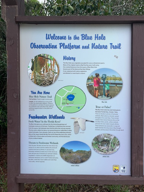 We visited Blue Hole where key deer, alligators and fish gather at the watering hole, formerly a limestone quarry, where fresh water is layered over salt water.
