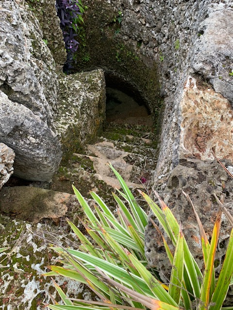 These pictures are of Ed’s well. He of course dug it, carved out stairs and also used the well for his refrigerator. In the last picture he used a round piece of coral to stop the children for going down the well. It could be rolled with just a slight nudge.