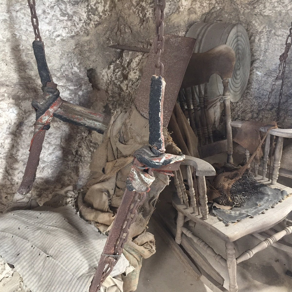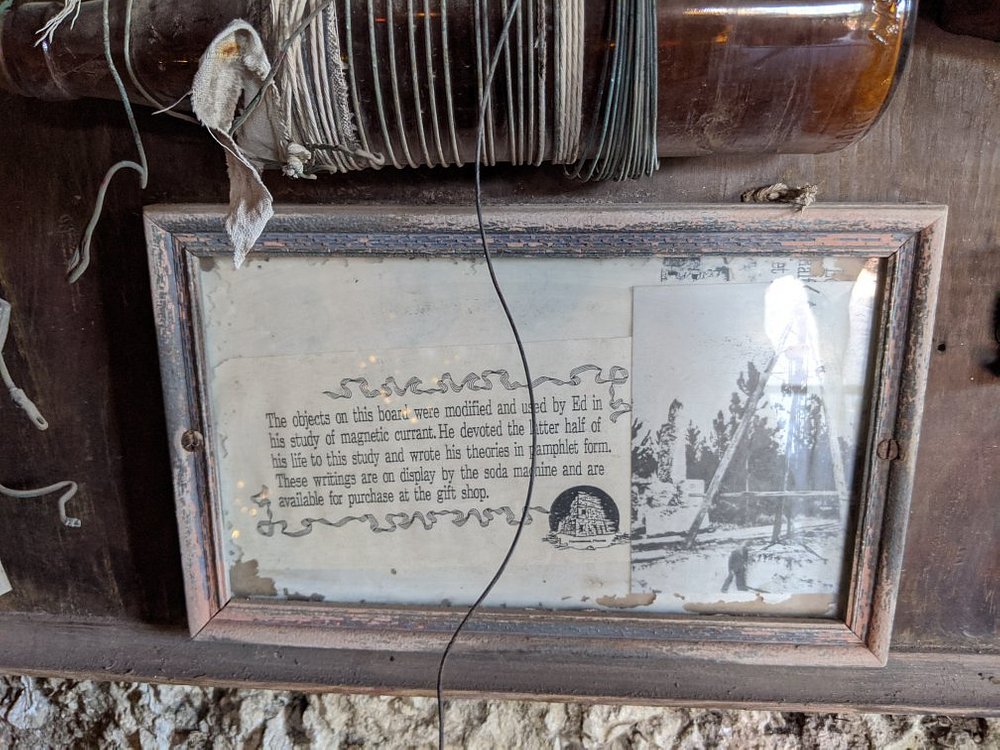 This 9-ton stone gate was built and installed by Ed at the turn of the 20th century,one finger could open it. It stopped working in 1986. In order to remove it, six men and a 50-short-ton (45 t) crane were used. Once the gate was removed, the engineers discovered how he had centered and balanced it. He had drilled a hole from top to bottom and inserted a metal shaft. Leedskalnin did this all by himself.