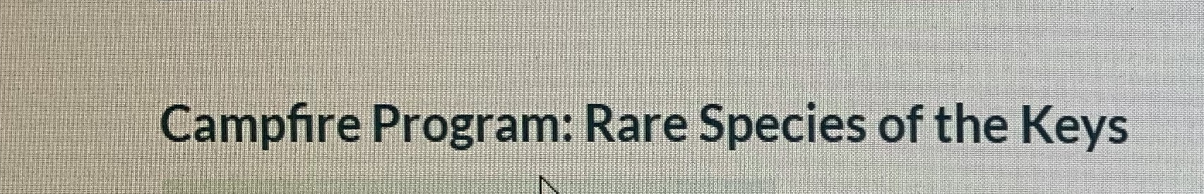 Ranger Siarra will be showcasing a holiday craft and talking about some of the rare and endangered animals that call the keys home. We will have the campfire going, so bring the s’mores!