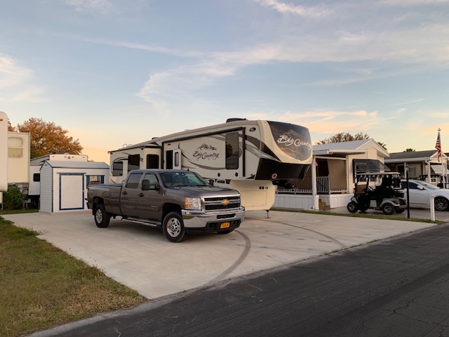 We are now at Recreation Plantation, which is just a little north west of Orlando. We left Key Largo on Friday the 14th. Drove a total of 353 miles, took seven hours. We are staying here till the end of February at one one of the lots here. There are mostly mobile homes here, with scattered Rv lots. This place is right next to the huge community called The Villages. Looking forward to not work camping and just relaxing for a while. A picture of our spot is below.