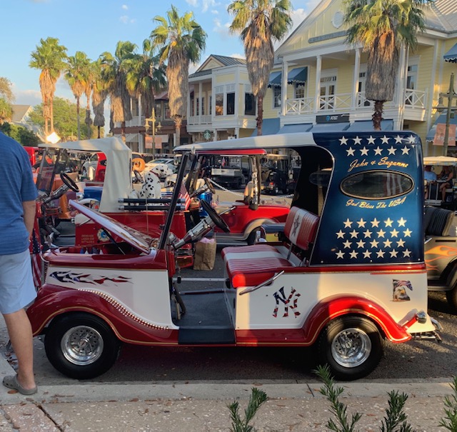 Not a Car Show a Golf Cart Show ? On March 1, 2022 By Full Time Rver 2018 Every so often they have a golf cart show at Lake Sumter Square, so we figured why not? It was fun to see the people and their carts and listen to Stella Beat at the Sumter Lake Town Square! Related