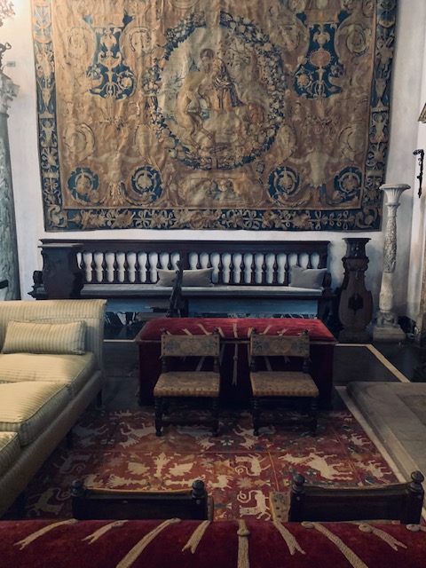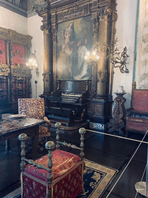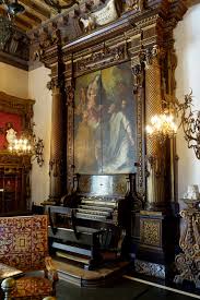 The Living Room was the largest room in Vizcaya. It has been called the “Renaissance Hall” because many of the objects were created during the European Renaissance. The organ can be played either manually or automatically using music rolls. Around the organ there is a religious painting that was cut in half to create the doors that conceal the organ pipes.