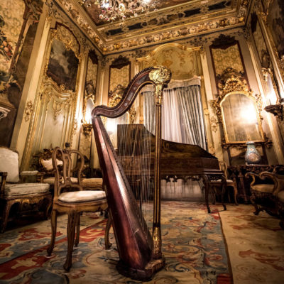 The Music Room – Documents suggest that the player piano and the organ were probably the only instruments actually used during James Deering’s lifetime, and that the selection of fine antique instruments in the Music Room functioned more as a gallery.