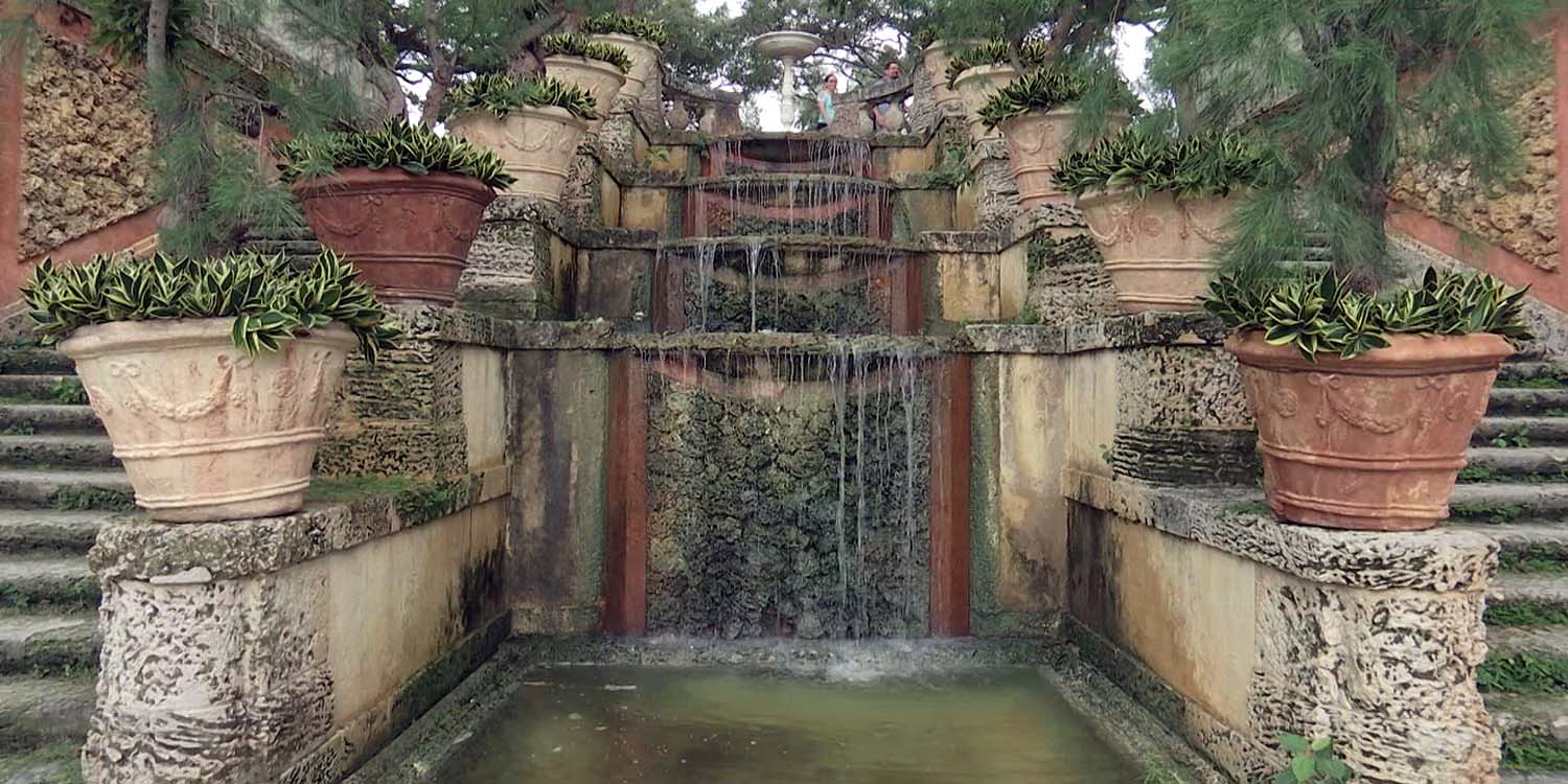 The Vizcaya Estate, which overlooks Biscayne Bay, was built between 1914 and 1922 as the winter home of farming manufacturer James Deering. He was a successful businessman and millionaire from the Midwest. In 1908, after retiring as the vice-president of the International Harvester Company, he bought property in South Florida. He chose to build an Italian style waterfront villa, surrounded by formal gardens and set in a carefully preserved South Florida jungle hammock.