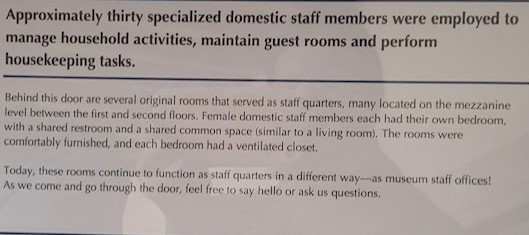 The Flower Room – It’s where flowers were cut and arranged for the house. This side of the house was dedicated more to staff and now this room is where volunteers prepare for tours of the house and gardens.