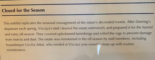 The house was not finished until the end of 1916, when Deering moved in on Christmas Day. The gardens were completed in 1921. He approached his villa from the sea. As his yacht’s gangplank touched down, the boom of ancient cannon heralded his arrival on Christmas Day, 1916. Deering was dressed as a Renaissance prince and his guests were dressed as Italian peasants.