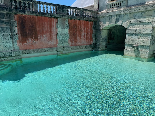 Of course it had to have a pool. The swimming pool at Vizcaya is partially located under the living room and has a very unique indoor / outdoor design. The indoor area gives the feeling of a traditional grotto. There is a ceiling mural designed by American artist Robert Winthrop Chandler which features an underwater scene including fish, seashells, marine life and coral. I didn’t get a picture of the mural 😒