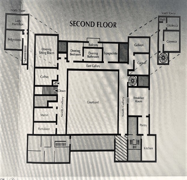 The second floor housed Deering’s personal suite of rooms and guest bedrooms as well as a Breakfast Room and the Kitchen.