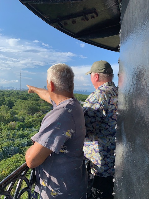 Yesterday one of my friends that I grew up with stopped by. Last time we got together was two and a half years ago. We were in Fort Myers and we went to Naples to see them. This time they came from Naples to visit us here, so they drove from the gulf coast to the Atlantic coast. Took almost three hours. What a great day seeing, my good buddy Mike, (we grew up right next door to each other) and Ann Marie. He was also my best man at our wedding 500 years ago. We talked a lot about the past, what we are up to now. Took a nice long walk around the park in 90 degree heat, but cooled off with refreshments in the Rv. After while we went to the lighthouse which was closed,(but we have a key), walked up and admired the great view that is up there. Then had a bite to eat at the Lighthouse Cafe, and strolled the beach for awhile. Just like that it was after seven. So away they went. It was great to see them both and catch up on life. GREAT DAY HAD BY ALL