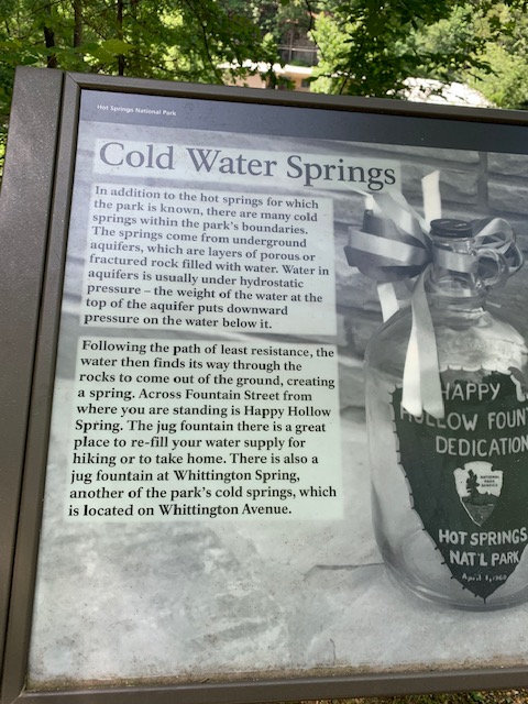 Hot Springs AR. has lots of hot springs but they also have many cold springs where you can get fresh spring water. The driver stopped and we filled up our jugs. It was a great tour.