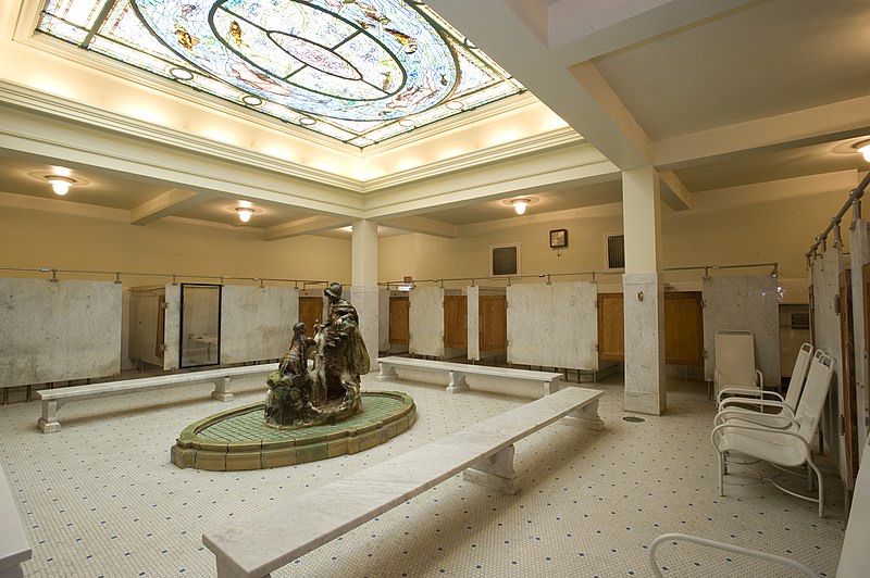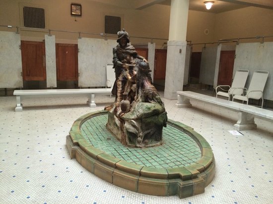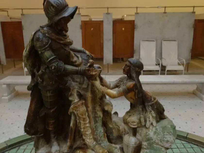 This bathhouse was really something to see. It was huge with its marble and stained glass to the marble portions of the bath halls and the stained glass ceiling in the Men’s Bath Hall and statue. Lots of rooms with a lot going on.