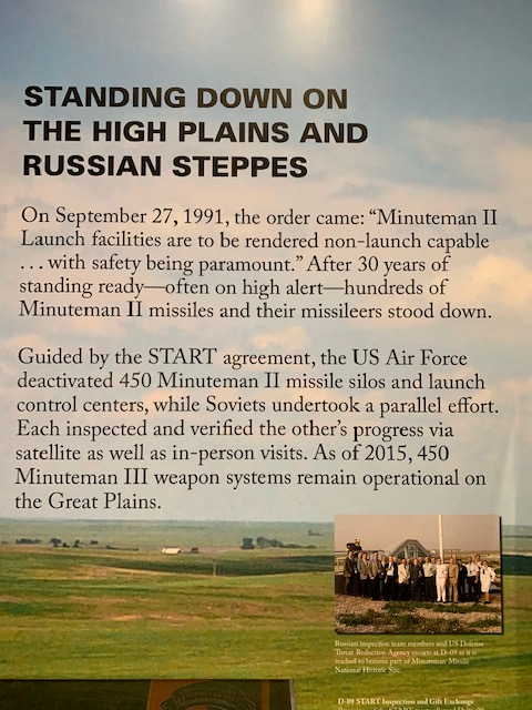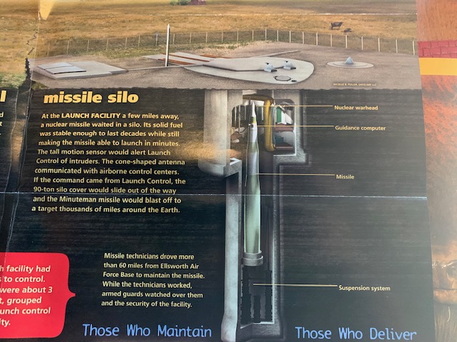 I enjoyed touring that site more than Wall drugs and the Badlands. It is a real eye opener. If I remember correctly our U.S. missiles pack more punch than those of the Soviet but the Soviet Union still has more total missiles at the ready. Either way either countries launch would be devastating to the world.