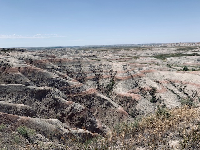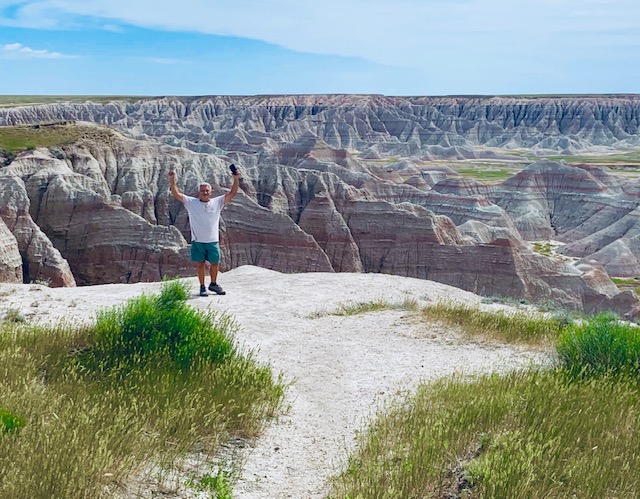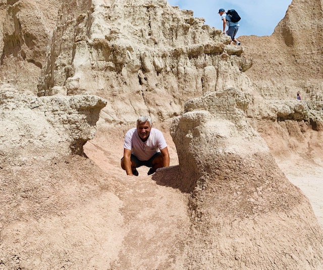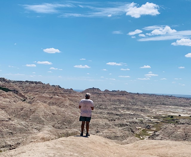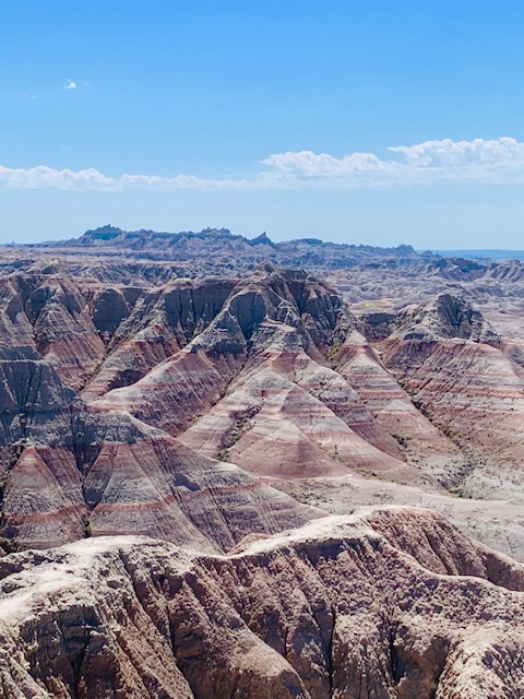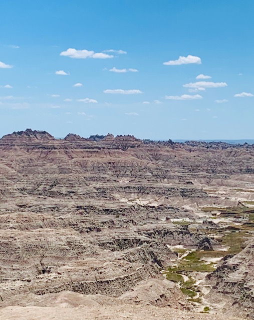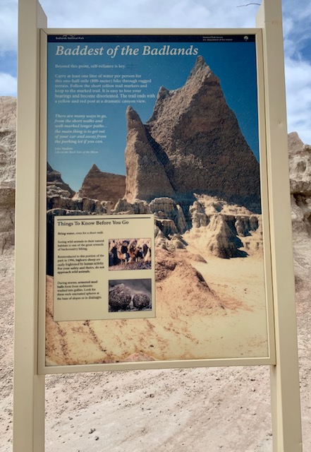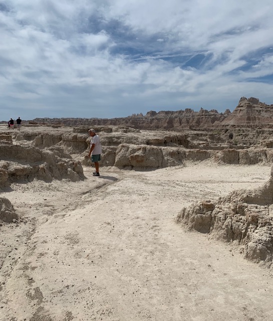 The Badlands that is. We went to the Badlands National Park two days, Why, well the first day we did all our hiking and before we knew it it was late. We do not like to leave Cooper in the Rv more than five hours, so we went back. The second day we did all the overlooks and pull offs with Cooper with us. I have to say this is an awesome place.