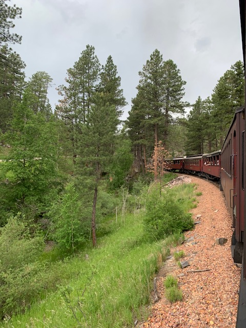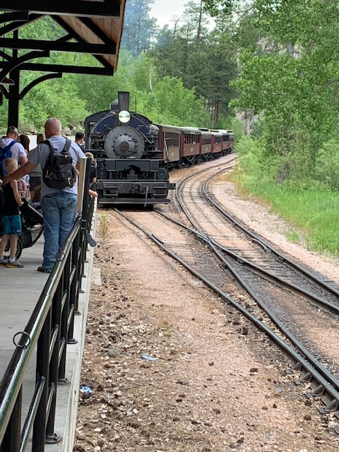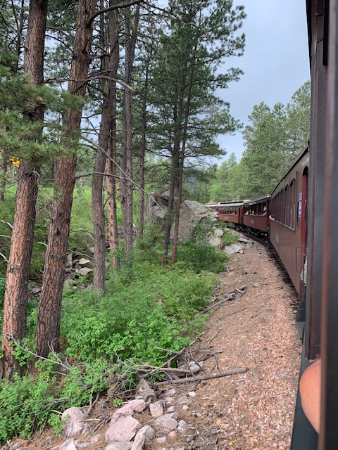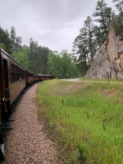 Since the Black Hills has many changes in elevation, the train has to maneuver 4 – 6% grades, which is very difficult for any train, actually it’s the third steepest railroad grade in the country. It goes through some of the oldest rock formations, near the highest peak East of the Rocky Mountains and along the back side of Mount Rushmore.