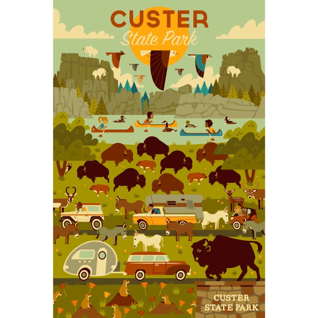 Encompassing 73,000 acres in the Black Hills, Custer State Park is home to abundant wildlife and truly incredible scenery everywhere you look! It’s among the largest state park in the continental United States and It was named for George Armstrong Custer, who led an expedition that discovered gold along French Creek in 1874.
