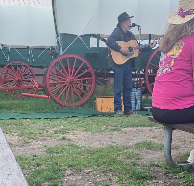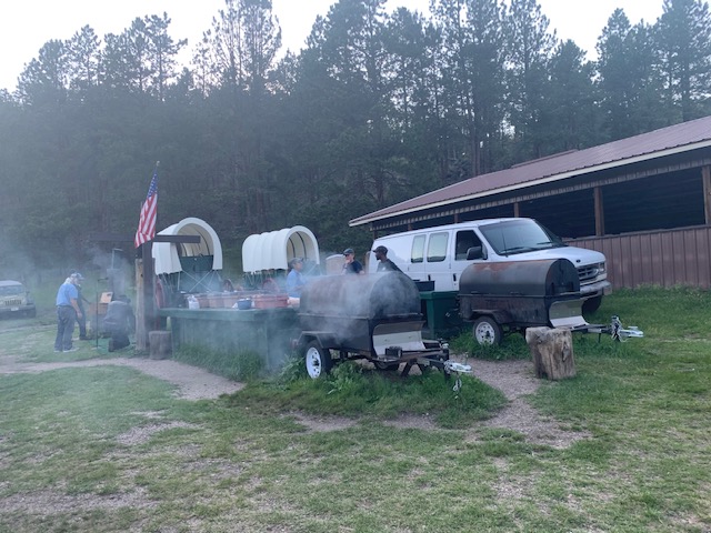 Menu includes your choice of either an 8 oz. choice sirloin steak or a 1/3 lb hamburger, with all the fixin’s: Cowboy beans, Cornbread and honey, Potato salad, Coleslaw, Watermelon, Cookies, Chuck wagon coffee and Lemonade. Everything was so delicious.