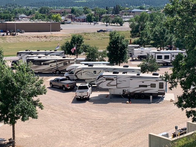 We are now at the Sturgis RV park, in Sturgis South Dakota. The park is very nice, the town is small and sort of dead. That changes during the motorcycle rally which is coming up soon, @ 3 to 4 hundred thousand come here, I have no idea how they fit them all, it must be bedlam. The three days we will be here we will be busy seeing the northern end of the black hills.