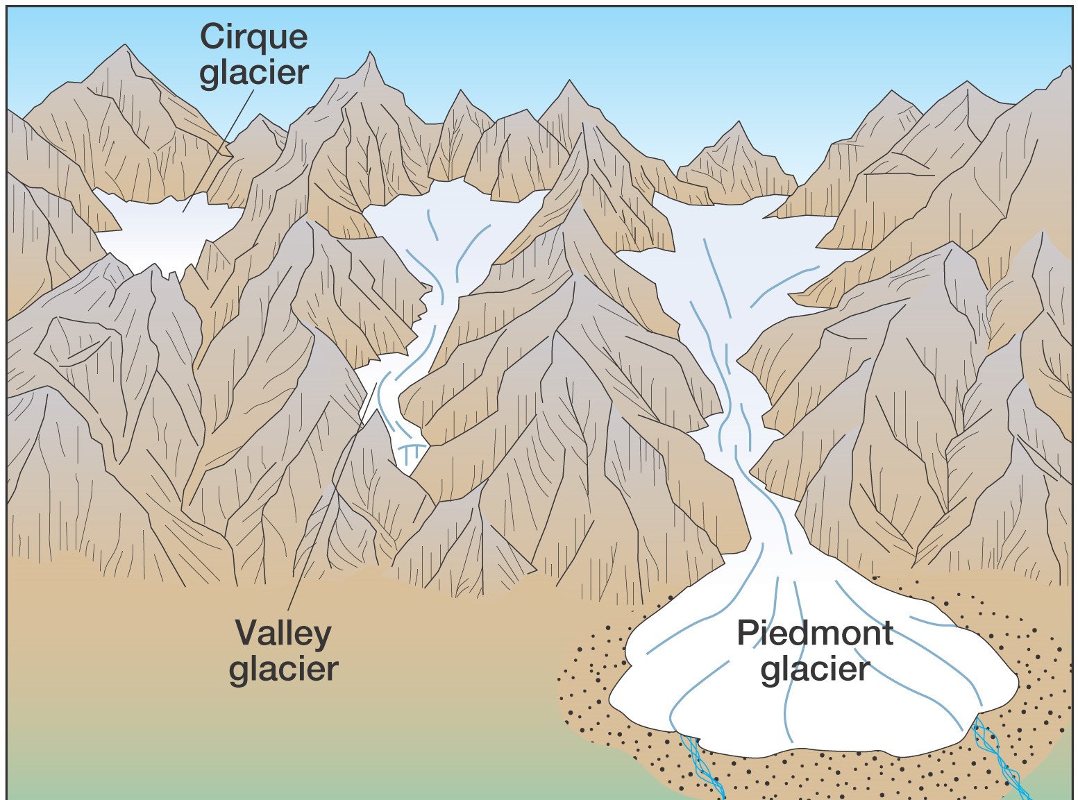 All of the glaciers at Rocky Mountain National Park are now cirque glaciers. A cirque glacier is a small glacier that occupies a bowl-shaped basin at the head of a mountain valley. Cirque glaciers are the remains of much larger valley glaciers.