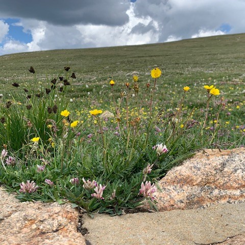 The varied elevation of the terrain in Rocky Mountain National Park brings with it a wide of variety of wildflowers. The flowers in Gorge Range have started growing again after a long period of not being there. Our guide told us after many years of being walked on they wouldn’t grow back. Botanist studied the area and learned that to get the flowers back they had to block off the area so know one would walk on them, so they did for about 100 years, and now their back!