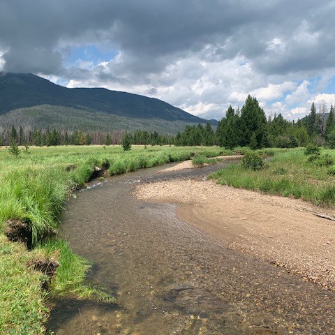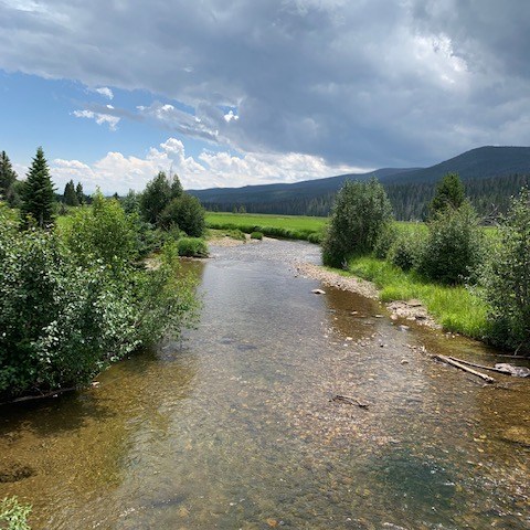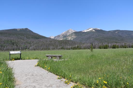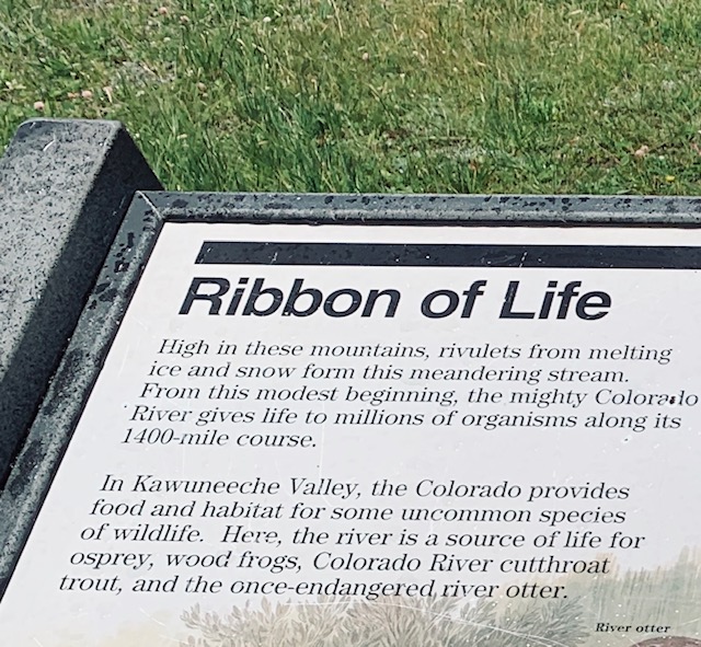 The trail meanders along the start of the mighty Colorado River, though it’s still little more than a mountain stream in the Kawuneeche Valley. It has beautiful views of the Colorado River, the Kawuneeche Valley meadows and the snow-capped Never Summer Mountain Range in the distance.
