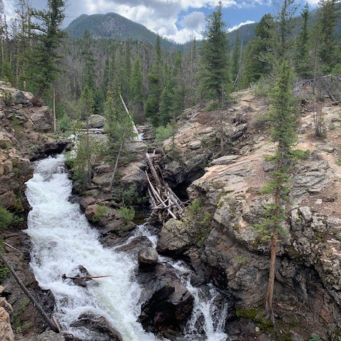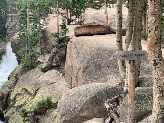 Is at Glacier Gorge trail and we hiked to Alberta Falls.
