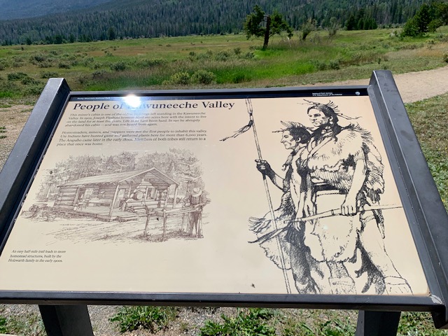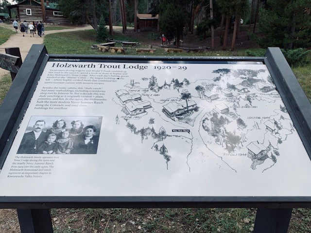 Further down the path is one of the Kawuneeche Valley’s first dude ranches once thrived here. In 1917, German immigrants Sophia and John G. Holzwarth built their homestead here, after wartime prohibition closed their saloon in Denver. Originally ranchers, they began hosting friends from the city at their “Holzwarth Trout Lodge” in the 1920s.
