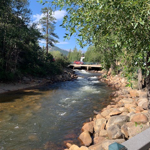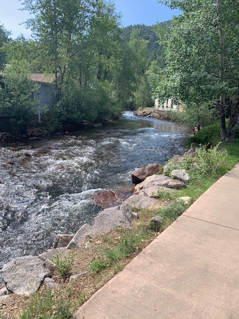 Our last day at Estes Park, which is right next to Rocky Mountain Park. The Town has a River walk trail that we took before we left.