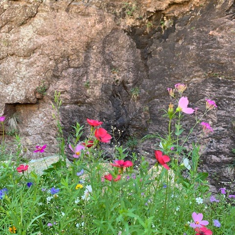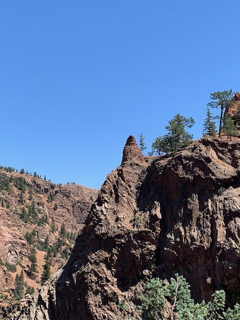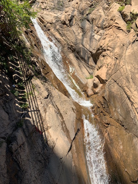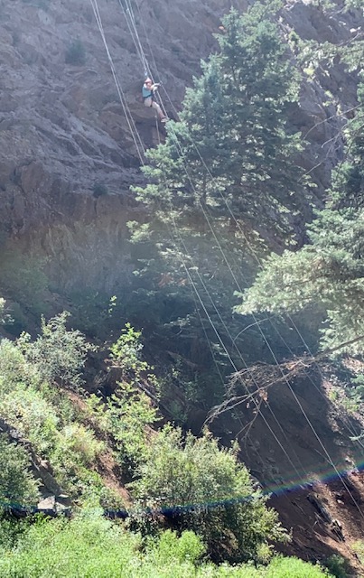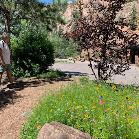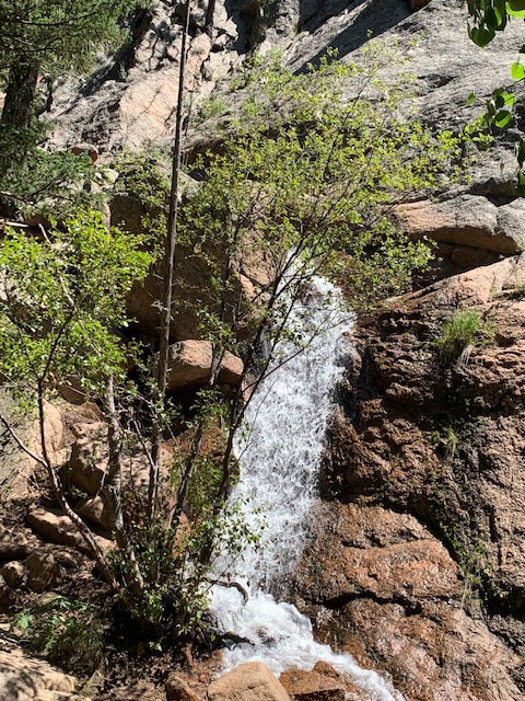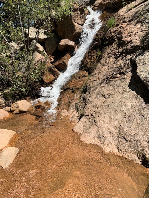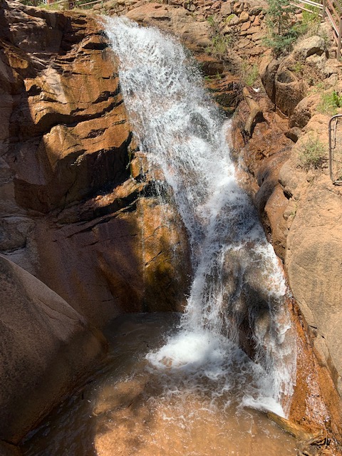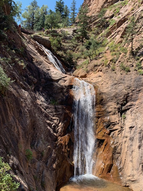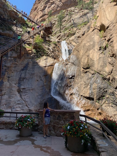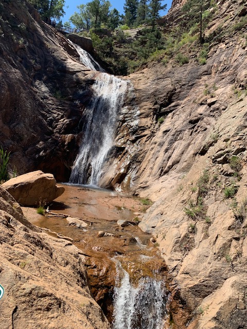 The hike to the Falls is a paved canyon trail it’s about a mile to get to the tiered waterfall. Along the way we saw stunning views of the Cheyenne Canyon and it’s incredible rock formations, along with beautiful wild flowers along the way. In the last picture you can see that you can also take a zip-line across the park.