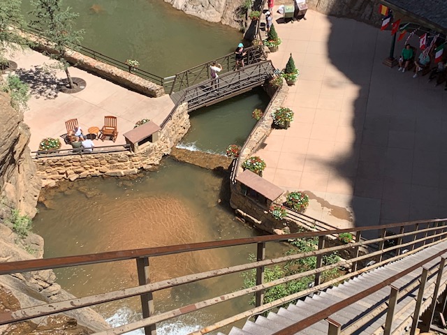 Seven Falls would pass through many more hands over the decades, but, fortunately, each owner saw the value in protecting the falls. Before Seven Falls was officially known as Seven Falls, it was a simple chunk of land given to Nathan Colby in 1872 as part of the Homestead Act. His wife is in the picture above. While different owners would make new trails and add safety changes or other features to accommodate visitors to the waterfalls. One of the owner’s even added an elevator in the 1990s, It has been nature that has changed 7 falls. Floods had a huge impact on the falls and the visitor park. The first, in 1965, wiped the entire visitor park off the map and the second Seven Falls flood in 2013 re-shaped the park forever. Five days of powerful rain stuck area after two summers of tragic fires and long dry periods. The water running through Cheyenne Creek and surrounding streams was referred to as a “500-year flood” with water levels so catastrophic that it destroyed the visitor park and the road leading to Seven Falls. Trees were upended, pavement completely disappeared and mud covered the region. Despite the best efforts of the Walker family, who owned the land at the time, the park was forced to close for over two years until its ultimate sale to the Broadmoor Hotel just down the road. The Broadmoor are still the owner’s today, they own a beautiful resort just down the way.