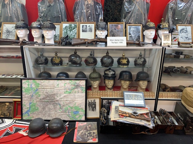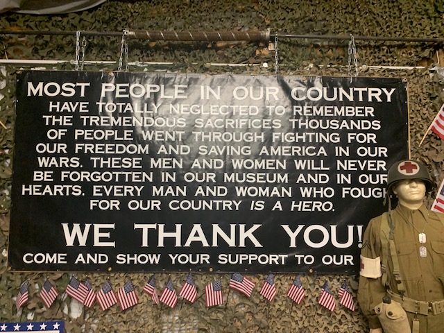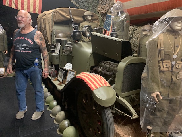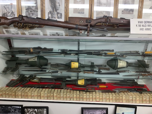 Dragonsmans has been a place I have wanted to go for two years. It is right here just outside Colorado Springs. A massive compound and history museum, where you have six shooting ranges, dirt track , paintball area, moto cross track, but most important, most likely the largest privately owned military museum in the country, just under 100,000 square feet in size. The Museum is divided into rooms, large rooms, he has rev war room, civil war room, WWI, WWII, divided into ,Russian, Nazi, Jap, British, American rooms, Korea, Vietnam, Irag, Afganistan room. Then there’s the Normandy beach head room, Battle of the Bulge room, radio room, nurses room. Vehicle room which has 152 operating vehicles from staff cars to jeeps to armored half tracks, bomb trucks to tanks. Every one of which is road worthy and plated. Medal of honor room has fifty two men with their picture, uniform and medal presented. The museum also has 1500 manikins dressed in uniforms, and period attire. 3000 American flags some of which are over 150 years old, 5000 helmets of all kinds, millions of rounds of live ammunition all over. Grenades, rockets, mortars, all live laying everywhere. Over 2000, firearms from pistols, rifle’s, light, and heavy machine guns all displayed as if ready to fight. Remember everything in the museum is authentic ,no fake stuff. Then after all that you go to the hot rod room, forty five hotrods are all over, all run and are street legal. There’s more, you then proceed to the 50’s and 60’s room, loaded with about 152 old gas pumps, juke boxes, coke machines, pedal cars, bikes, my banana seat bike was there. 500 lunch box’s, vintage shoes, it’s endless. And to top it off an Elvis room, loaded with everything and anything to do with Elvis, who is still alive. WOW I think that’s it. Tours are given three times a week, each tour is two hours long, and is $20.00 a person. We went Friday Morning and then decided to go back Sunday Morning, there were over 100 people in each tour. We hung back on Sunday to see things we did not see the first time, you could spend a week in here and not see everything.