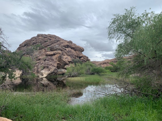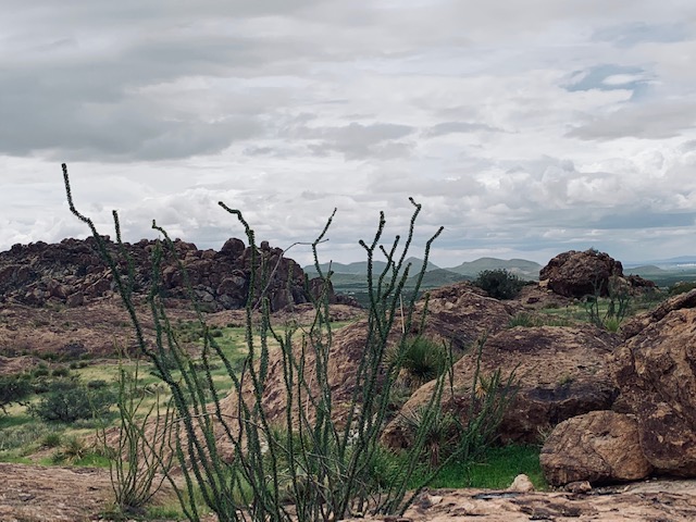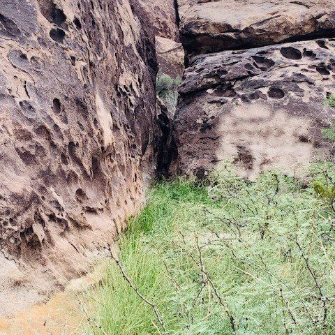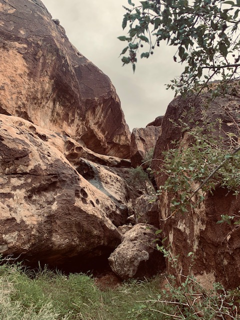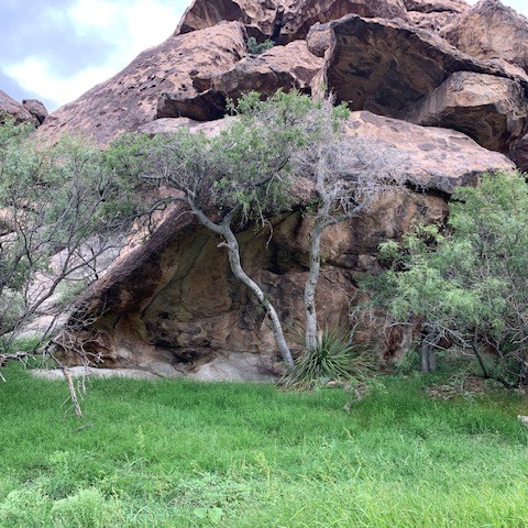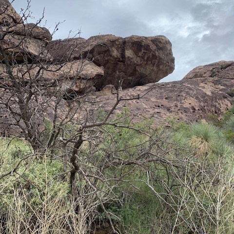 Absolutely a unique place. Hueco Tanks is an area of low mountains in El Paso, TX. Unlike the surrounding desert, Hueco Tanks still has remnants of trees  and other plants  that have descended from those that grew widely in the area at the end of the Ice Ages, 8,000 to 10,000 years ago.  You can even find unusual and even unique desert plants.
