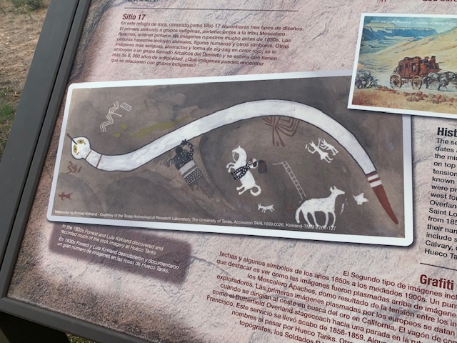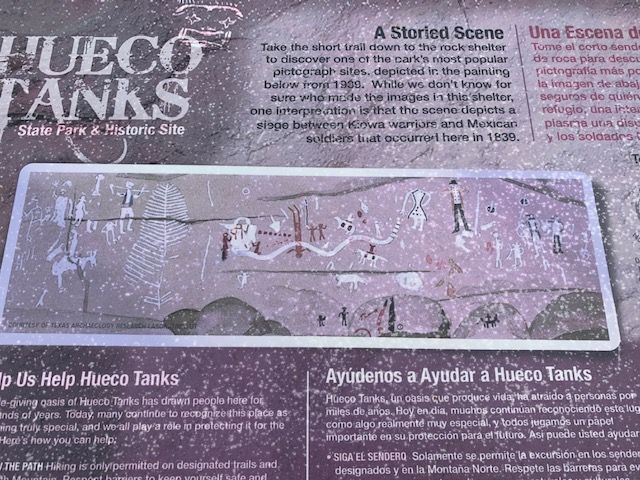 The rocks at Hueco Tanks also record the presence of latter-day visitors — cowboys and travelers through the region who also etched their names in stone. With the coming of Spanish-speaking people from the south and English-speaking people from the east, Hueco Tanks became a stopover for emigrants, adventurers and John Butterfield’s Overland Mail coaches. In 1898, it became the center of a major ranch. Sadly, vandals have also left their marks at the site.