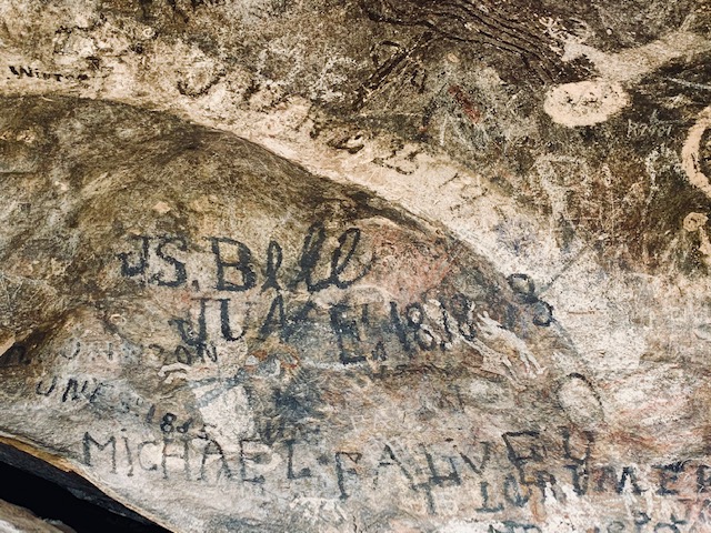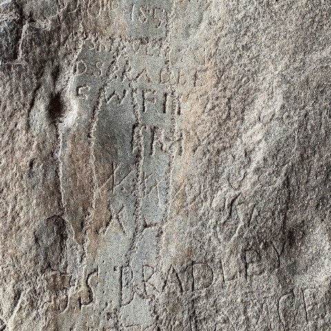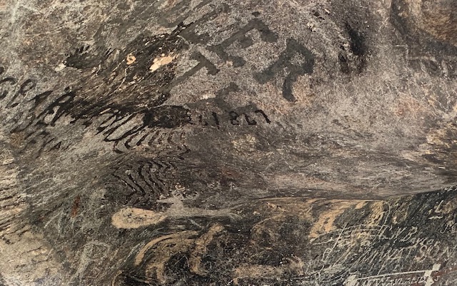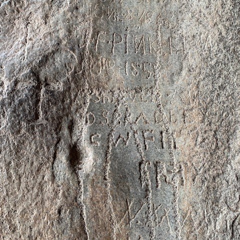 Dave sees a kind of “Family Tree” as members of this families names were carved in the rock in 1853.