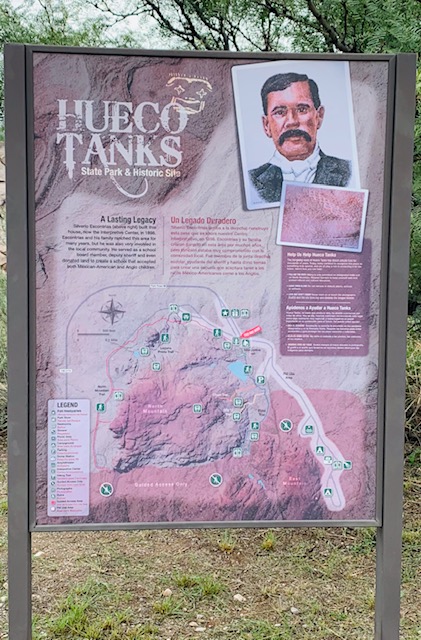 The State Park and Historic Site was originally part of a large ranch owned by Silverio Escontrias. Escontrias filed ownership papers for the ranch in 1898. He built a four-room adobe house at Hueco Tanks, and he and his wife Pilar raised 11 children here. Their ranch, which began as a cattle and horse operation, became a tourist attraction by the 1940s. Today, the park’s interpretive center is located in the family’s adobe house.