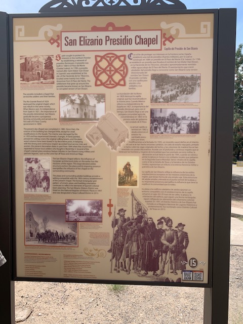 San Elizario Chapel and Presidio (fort) was established in 1789 as Spanish protection against foreign control and Indian raids. In 1829 there was a flood and the chapel was rebuilt by using the original bricks from the original Presidio walls in the 1840’s. It continues to be used as an active church to this day.
