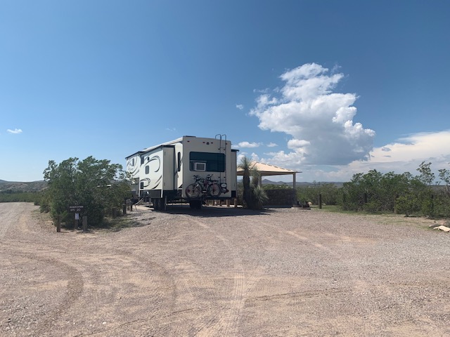 We are now back in New Mexico, just above Las Cruces, staying for a week at Leasburg Dam State Park. The park is right along the Rio Grande river, which is dry right now. We have a nice pull thru spot and nice scenery unlike El Paso. Drove 72 miles today, north from El Paso.