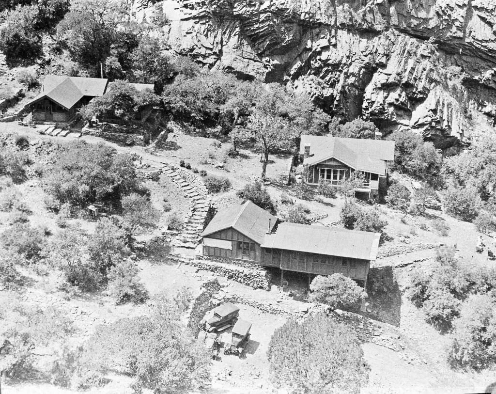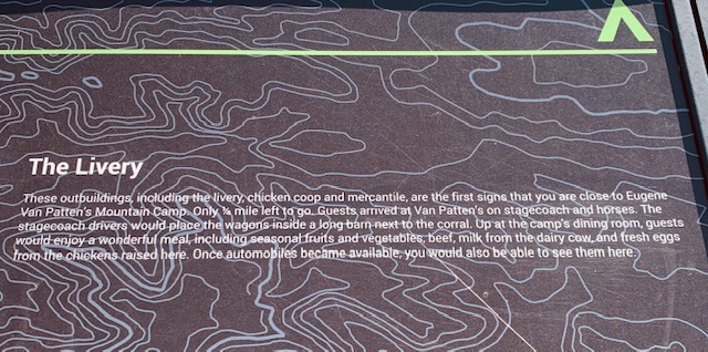 Built in the late 1800’s, these buildings acted as the hub for the servicing of the hotel a little further up. This is where the wagons unloaded supplies, horses were watered, the chicken coop was kept, and even a vegetable garden grew food for the guests. The stagecoach delivering guests would drop them at the resort’s front door and then head back down to this location. At the height of the resort’s popularity the station included a barn for coaches, wagons, horses and a general store.