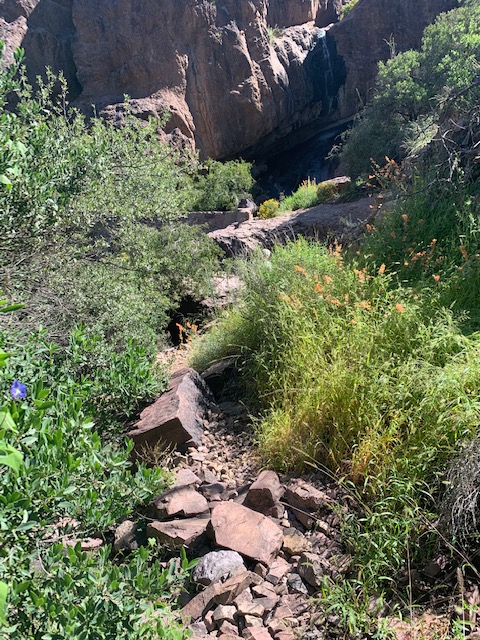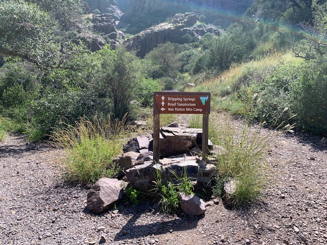 The Dripping Springs Trail that we took was a 3.5 -mile, moderately-rated hiking trail that took us to a waterfall and ruins of an abandoned mountain camp.