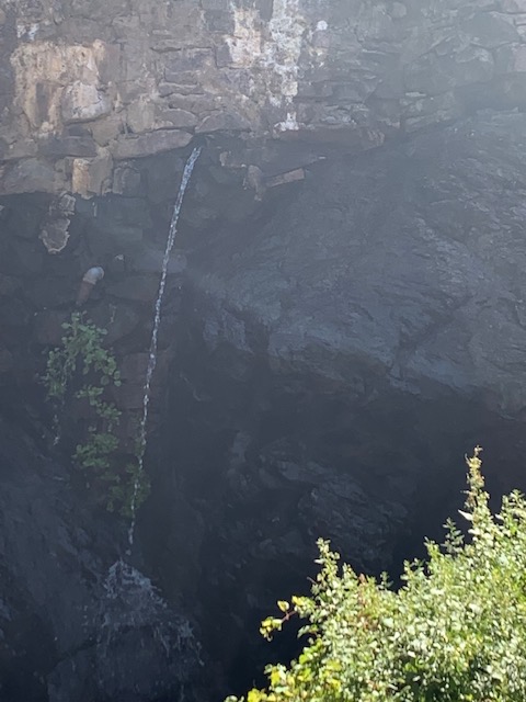 The next stop along the trail is where the the rock springs lies just beyond the resort. Water emerges several places in the cliff face, in some spots as small waterfalls. The amount of water coming out of the mountainside depends on the season. As you can see not a lot of water is coming out at all, but it was still a nice place to take pictures and walk around.