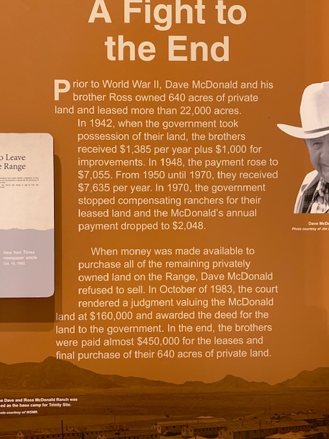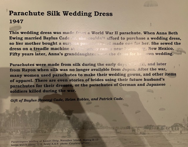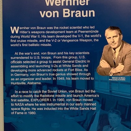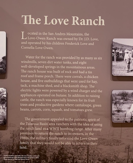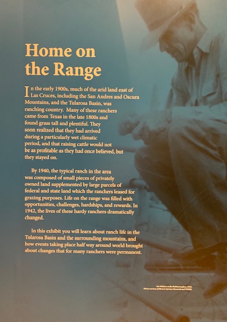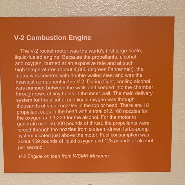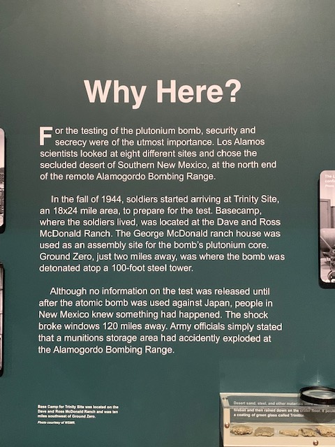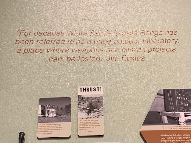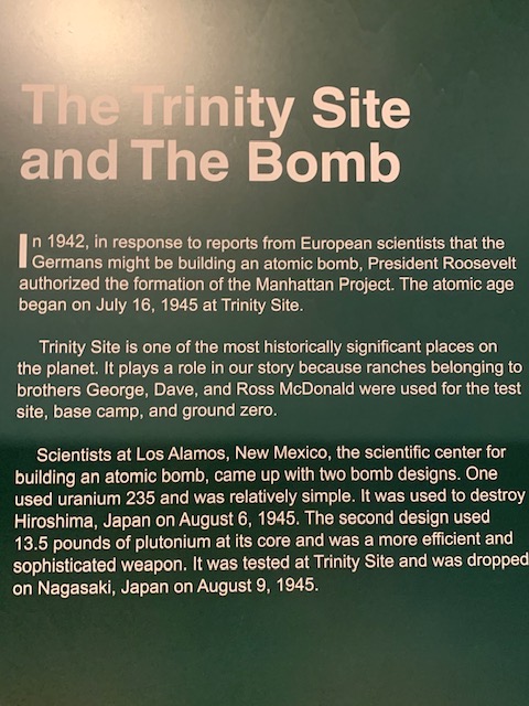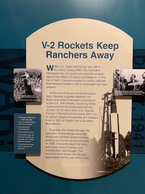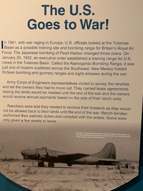 The White Sands Missile Test Center Museum located in the White Sands Missile Range near here, has been closed, so we were glad we got to see the section of this museum that told about the happenings when WWII broke out.