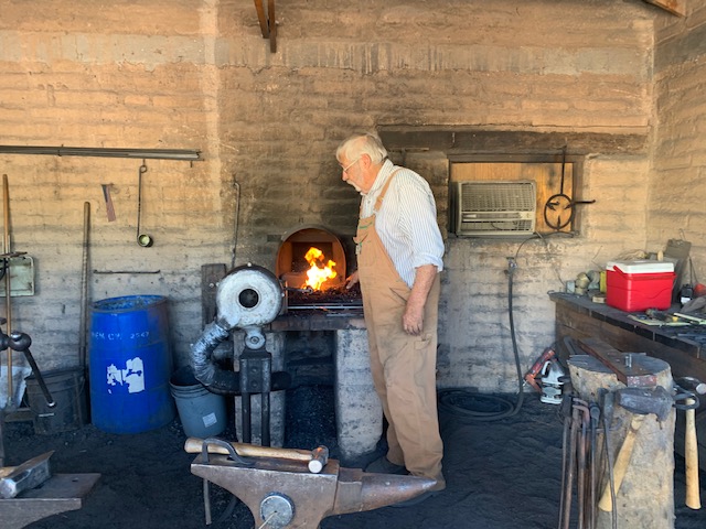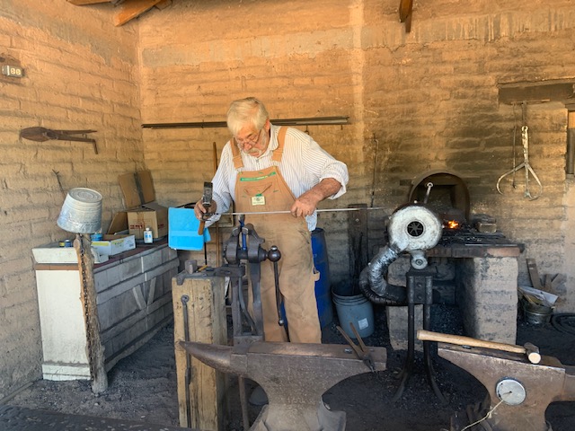 Volunteer Dave was demonstrating how to make hooks from a steel rod. It was interesting to learn how it was done and at the end we got to keep the hook.
